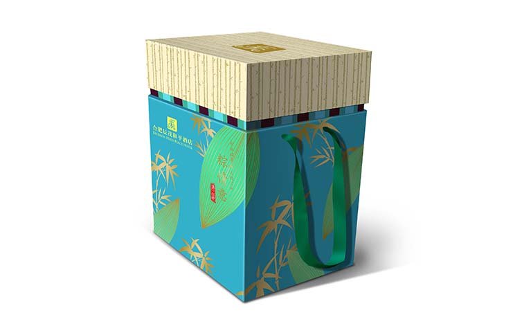 包裝禮盒設計結合當地文化,以粽葉的綠色為底色進行設計和變化,搭配以大氣高檔的禮盒盒型,運用了先進和精湛的工藝技術,紅門包裝致力于客戶和消費人群的共同滿意,滿足端午送好禮的市場需要。