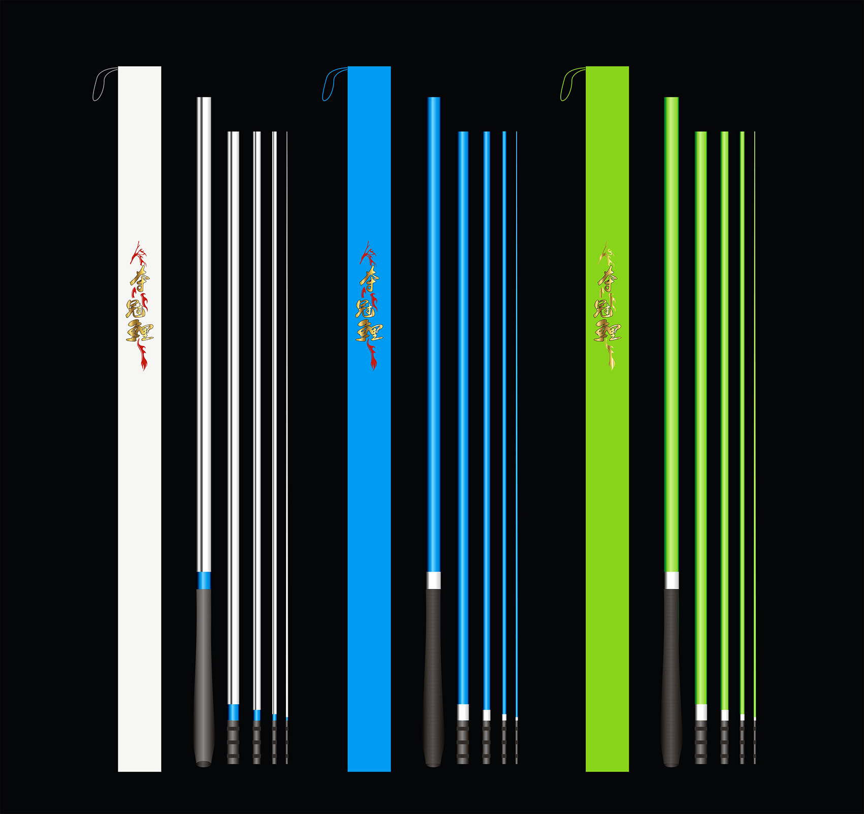 我想象中,這三款魚竿,采用電鍍漆的工藝,拿在手上噌亮的感覺,應(yīng)該很好,包括竿架和抄網(wǎng),做成一個(gè)系列,